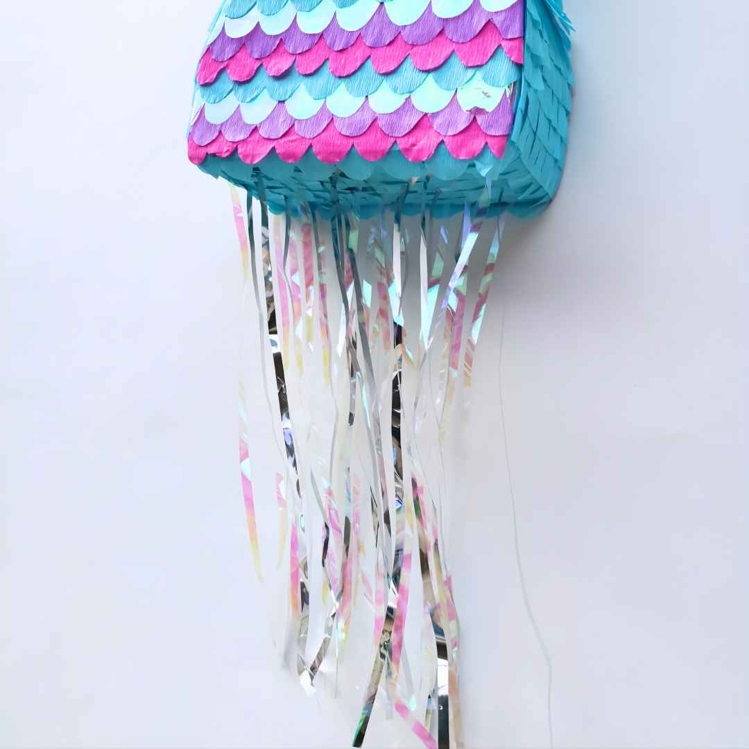 Ha igazi mesebeli hangulatot szeretnél a buliba, akkor a Sellő Farok Piñata a tökéletes választás! Csillogó, szivárványos színekben pompázik, és a sellővilág legszebb pillanatait idézi meg – garantáltan elvarázsolja a gyerekeket és a felnőtteket is.